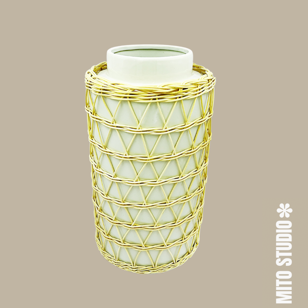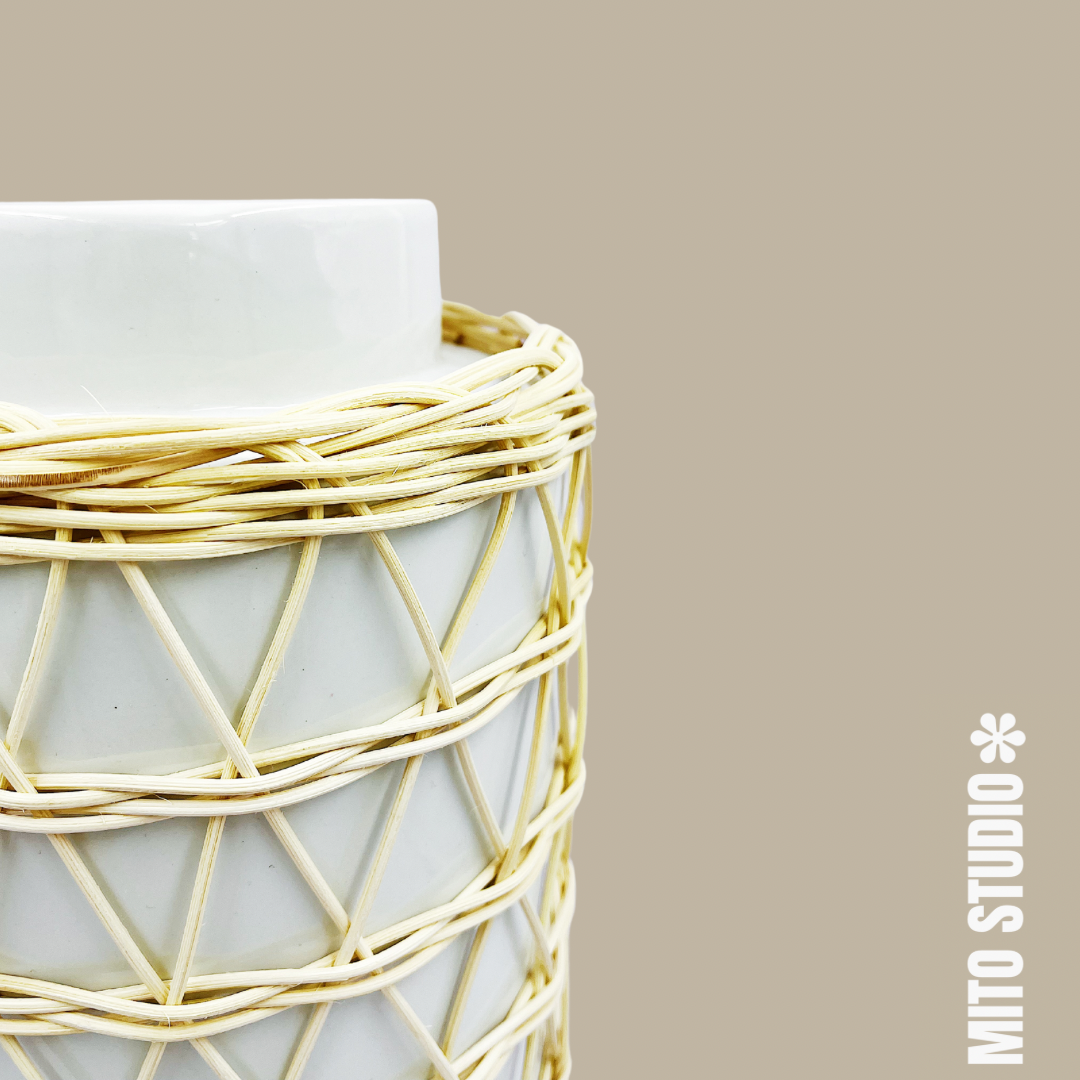 MATERIAL: Cerámica horneada y mimbre tejido.